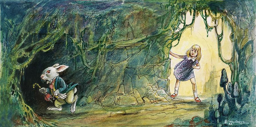 [Note: Alice Chases The White Rabbit is a painting by Philip Mendoza.]